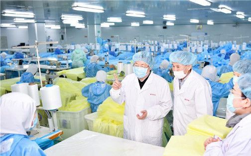 省委書記、省人大主任王東峰走進(jìn)生產(chǎn)車間,認(rèn)真查看醫(yī)用防護(hù)服生產(chǎn)情況,代表省委、省政府,